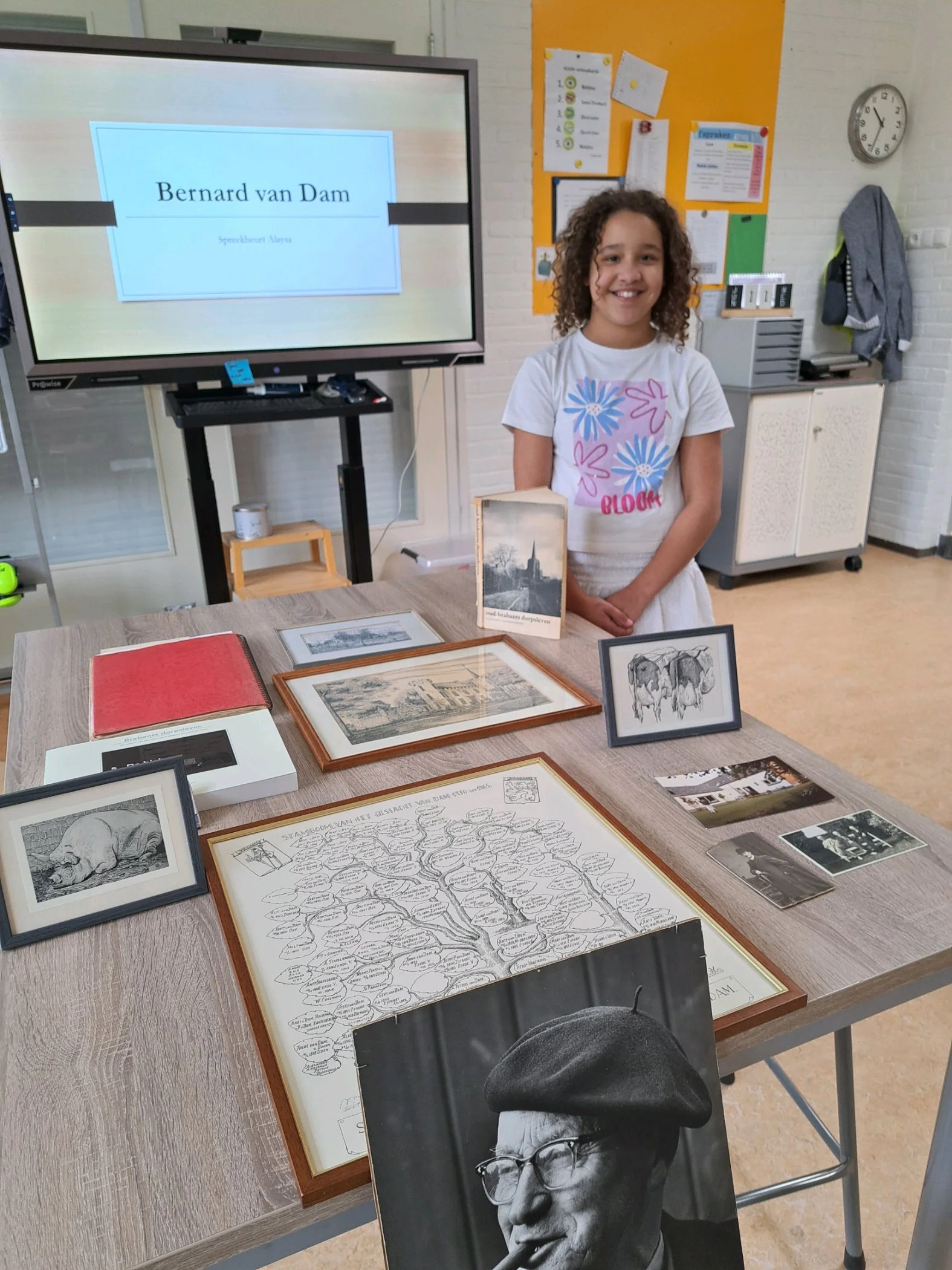 De klas was heel belangstellend en de juf was erg onder de indruk. Met een dikke 9 voor haar spreekbeurt scoorde Alaysa een prachtig resultaat. Uiteraard zijn wij erg trots op haar en vinden het geweldig dat een verre nazaat van Bernard van Dam zijn nalatenschap aan de jongste generatie doorgeeft. Goed gedaan, Alaysa!